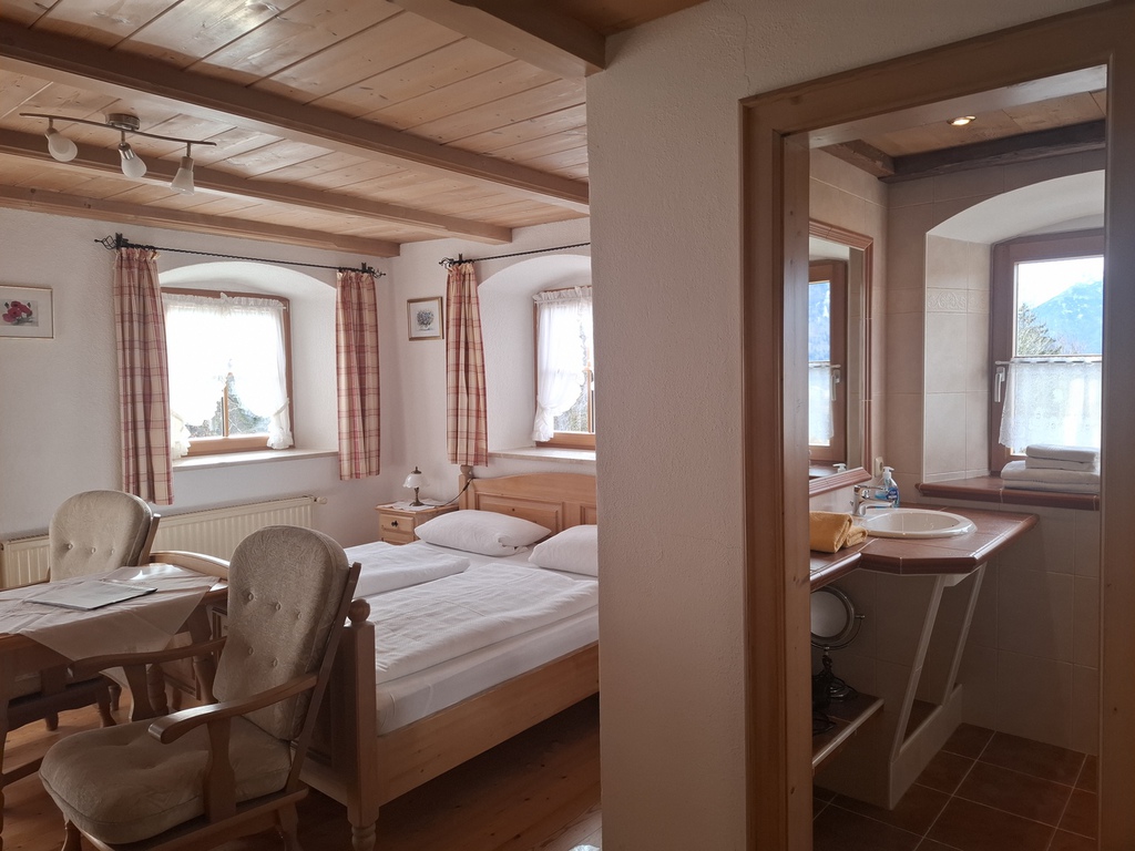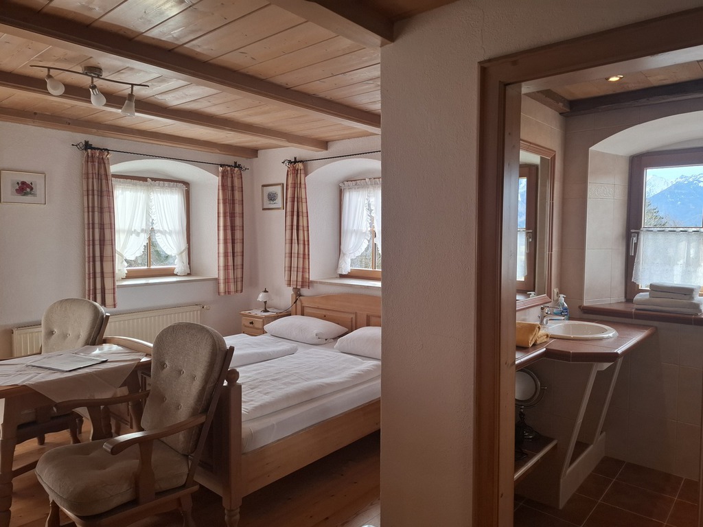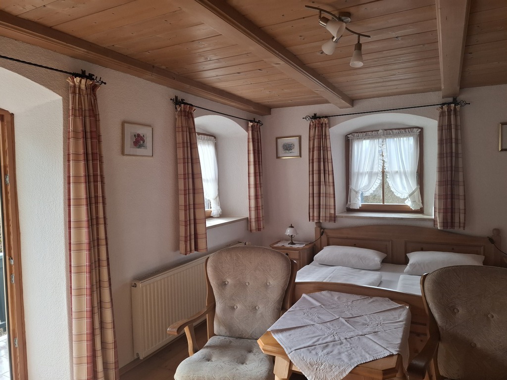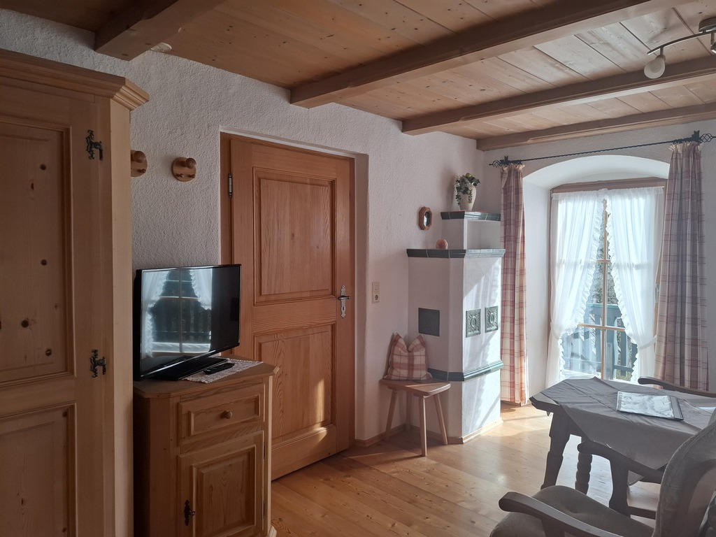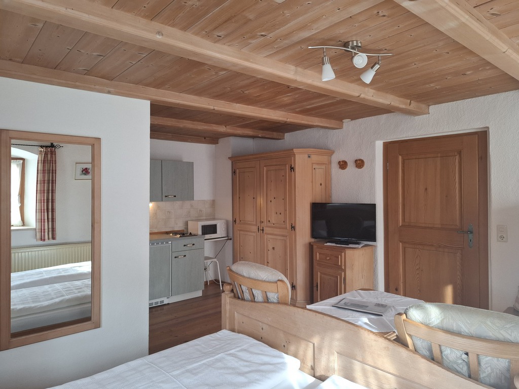 Das Einraum-Appartement ist ca. 20 m² groß und ist für 2 Personen geeignet. Es befindet sich im 1. Stockwerk in unserem Bauernhof - von dort aus hat man einen wunderbaren Blick auf Unterwössen und die umliegende Berglandschaft.